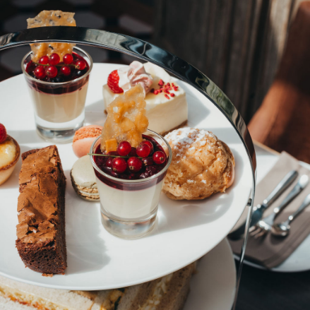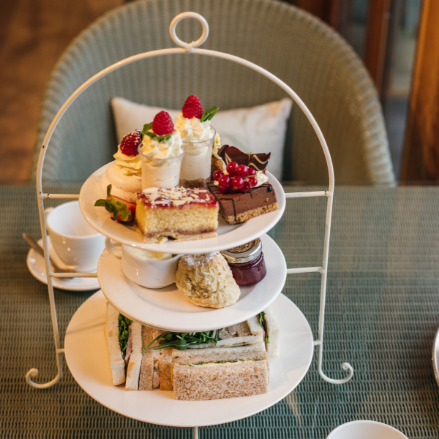 A delightful selection of freshly made sandwiches, home-baked jam & cream scones and a mouth-watering choice of desserts prepared by our own patisserie chefs. Served with a choice of teas or a cafetiere of coffee.